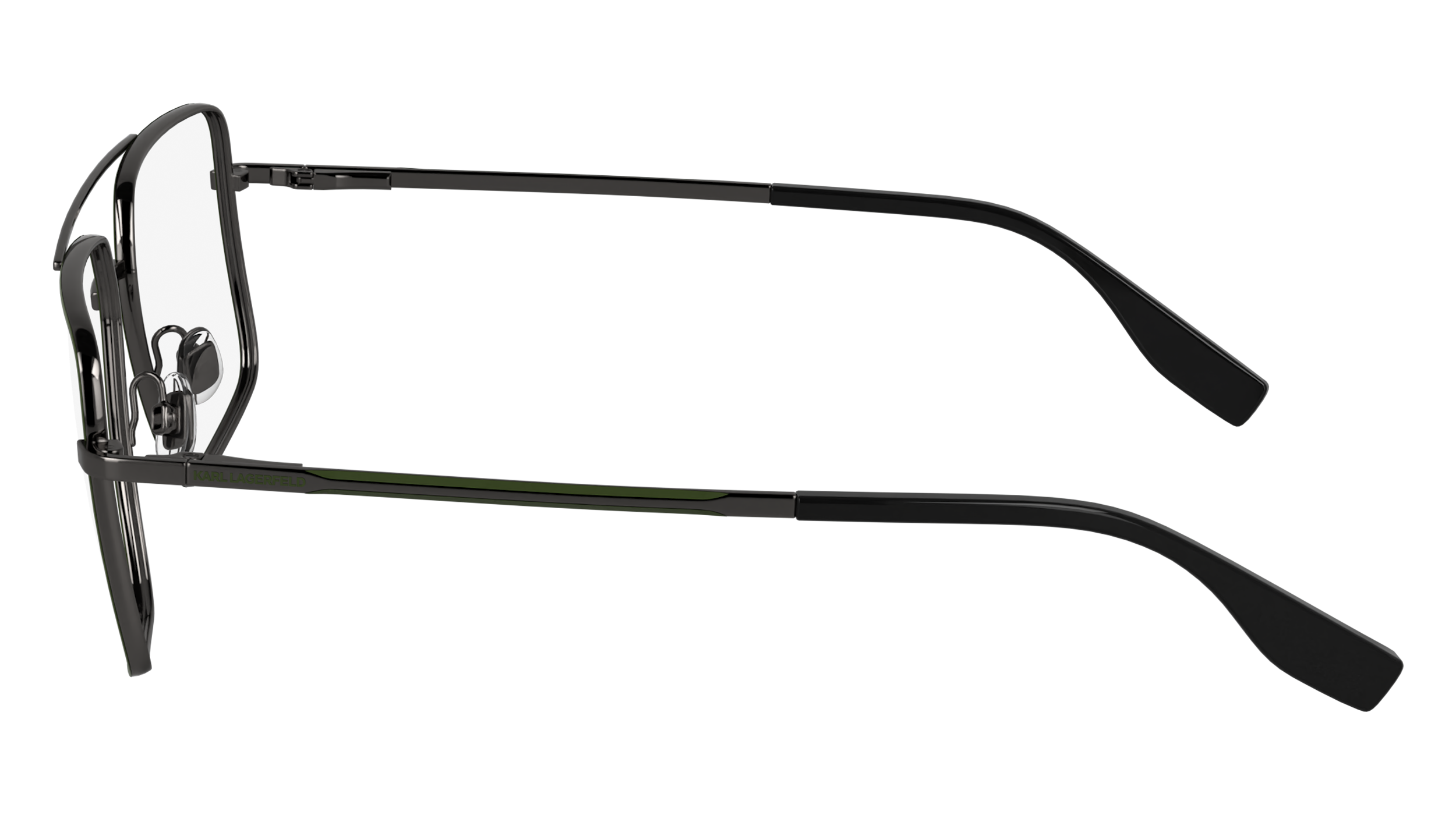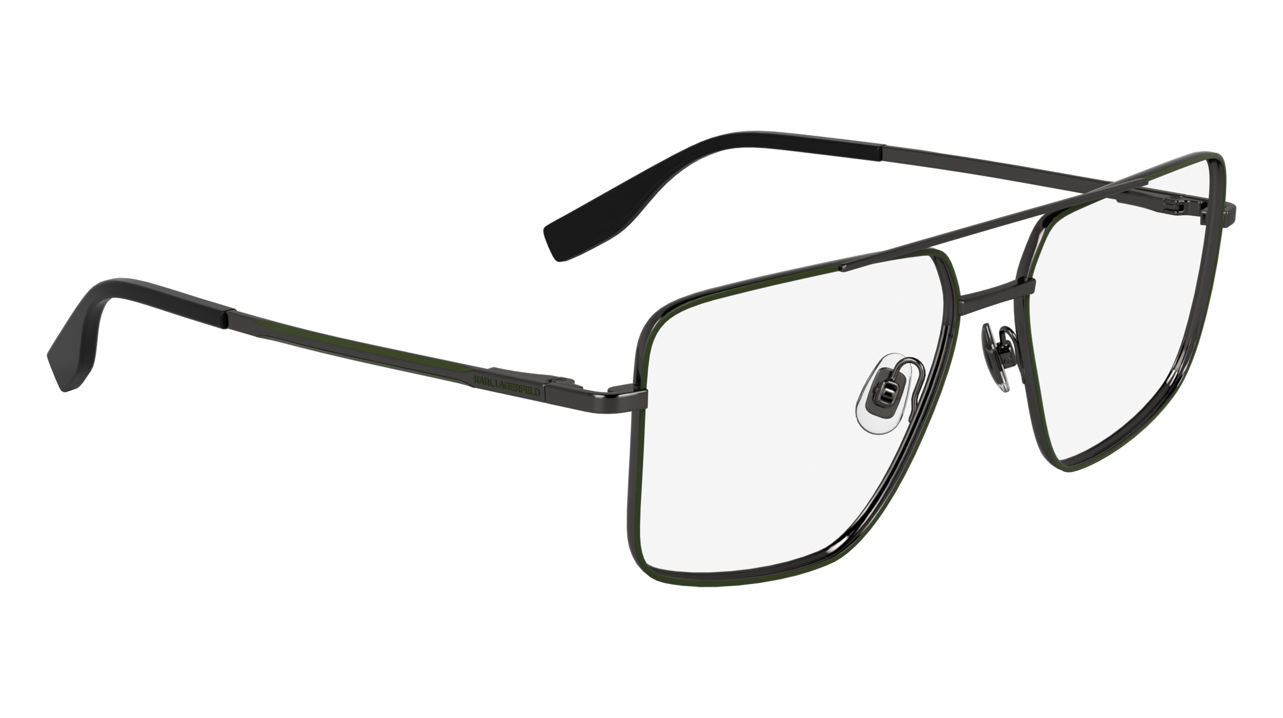 Eyeglasses Karl Lagerfeld KL357, inspired by iconic aviator, offer a classic and timeless style. The metal pilot and green pilot frame give a sober but of great impact look. Recommended for oval, triangular and heart faces, since they balance the most pronounced features. Ideal for men.
