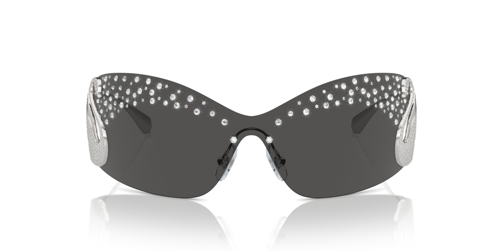 Solbriller Swarovski, SK7020 -modell, de kombinerer modernitet og originalitet med sin geometriske ramme. Designet fremheves av sølvfargen på rammen. Anbefales for runde og ovale ansikter, siden de legger til definisjon og struktur. Ideell for kvinner.